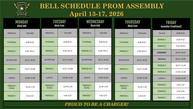 BELL SCHEDULE FOR WEEK OF APRIL 13-17